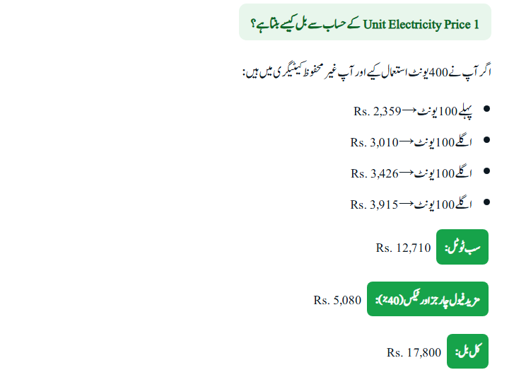 1 Unit Electricity Price in Pakistan