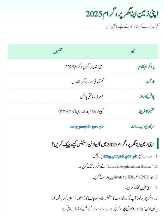 Latest News: Apni Zameen Apna Ghar Program 2025 – How to Check Online Status