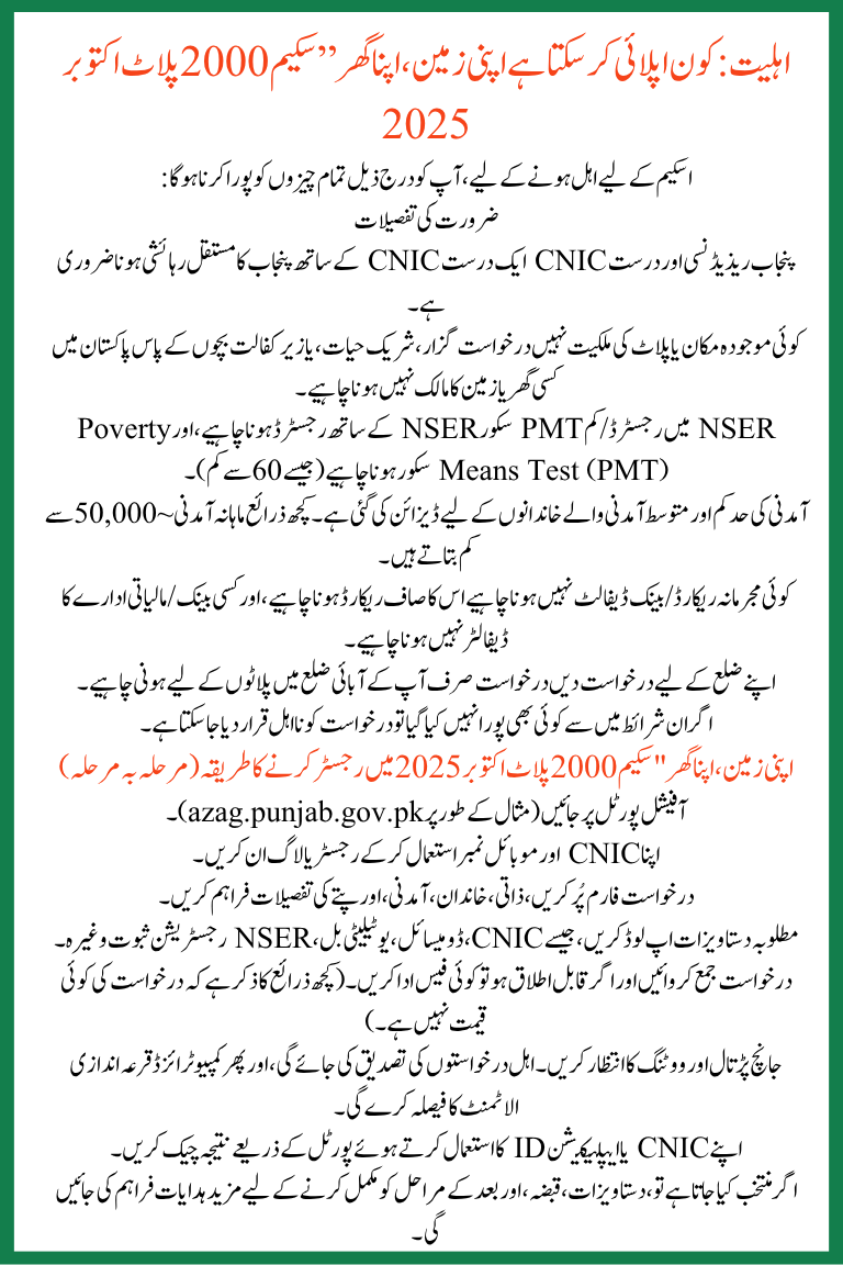 Eligibility: Who Can ApplyApni ZameenApna Ghar Scheme 2000 Plot Registration October 2025