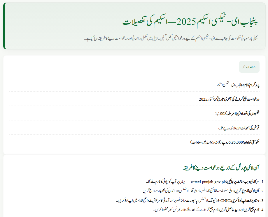 For more details and to apply, visit: https://e-taxi.punjab.gov.pk
