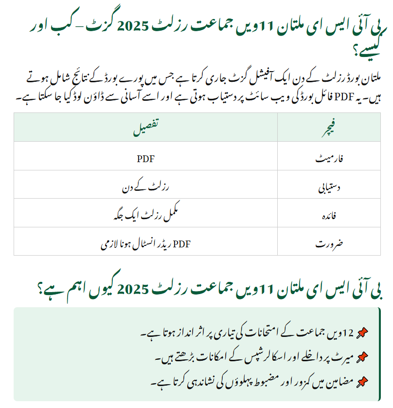 This result holds immense importance in every student’s academic life. The performance in 11th grade directly impacts the preparation and confidence for 12th-grade exams. Students who secure good marks in the BISE Multan Board 11th Class Result 2025 get better chances for merit-based scholarships, admissions to reputed colleges, and future opportunities. On the other hand, students who fall short can identify their weak subjects and improve in the next year. This result is more than just grades—it shapes the academic and career direction of thousands of students.