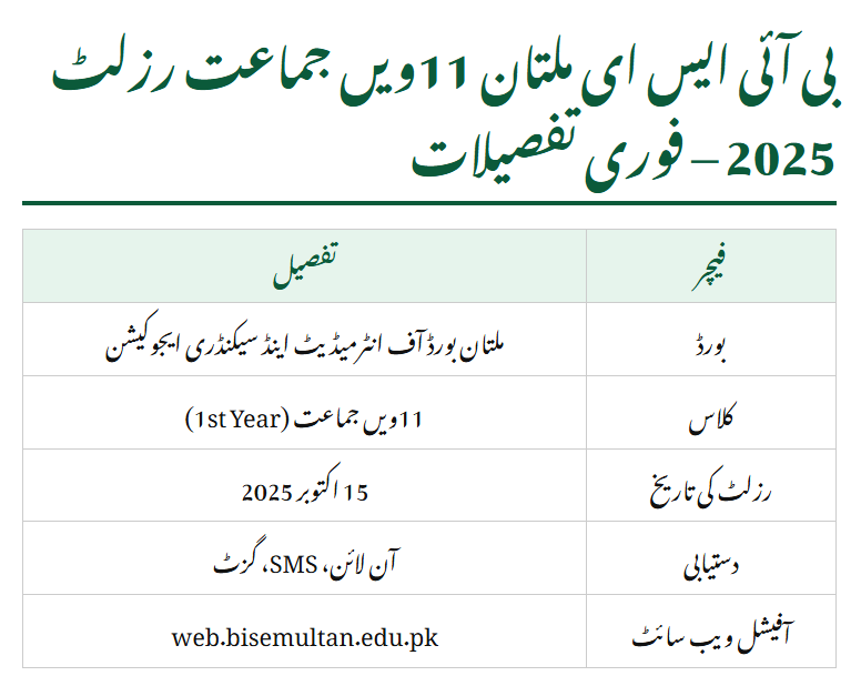 Read Also: BISE Multan 11th Class Result 2025
