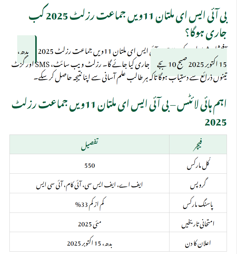 Every year, when exams come to an end, students are left with just one question in mind: “When will my result be announced and how will I perform?” Parents’ expectations, teachers’ efforts, and students’ hard work—all come together on the result day. The BISE Multan 11th Class Result 2025 will decide the future of thousands of students across Southern Punjab. This result is not just a list of numbers but a reflection of students’ dreams, goals, and academic direction. Whether you are an FA, FSc, I.Com, or ICS student, this result is a milestone in your educational journey. In this guide, we’ll explain when the result will be announced, how you can check it online, by SMS, or Gazette, and what options are available for rechecking.