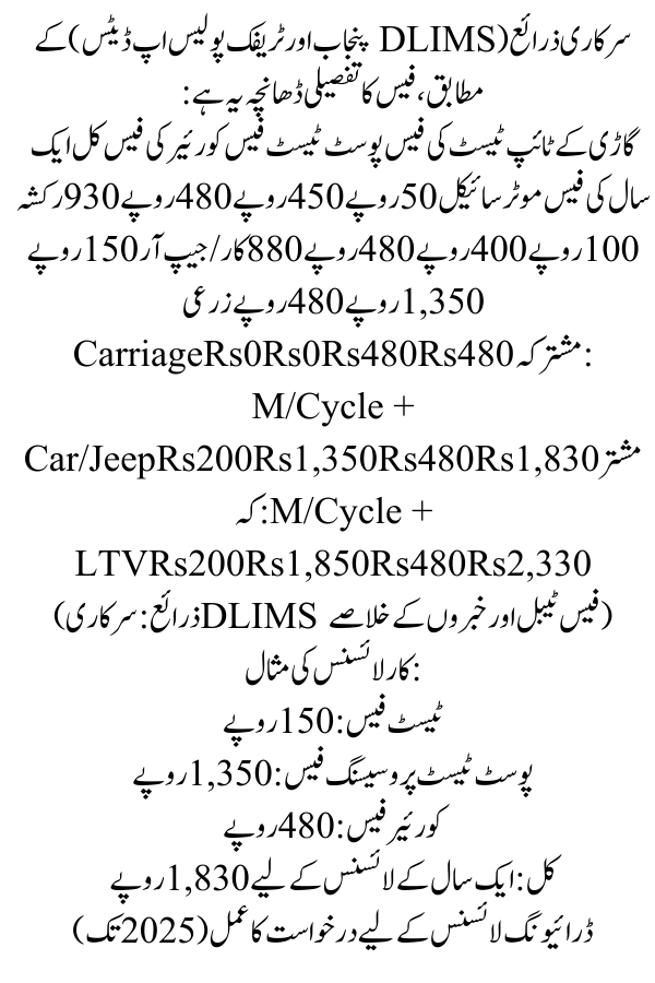 September 2025 Update: One-Year Driving License Fee in Punjab