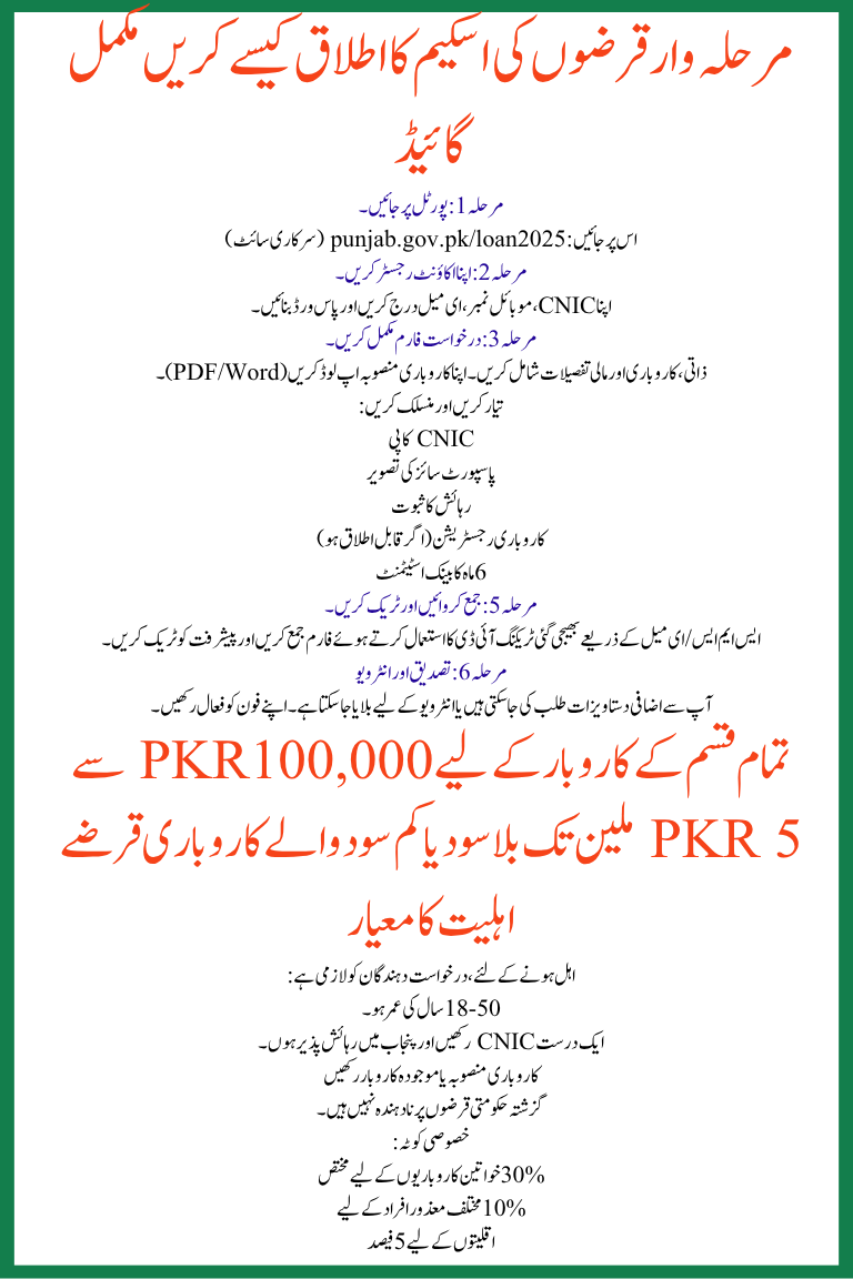 Chief Minister Punjab Loan Scheme 2025 Interest-free or low-interest business loans from PKR 100,000 to PKR 5 million for all types of businesses