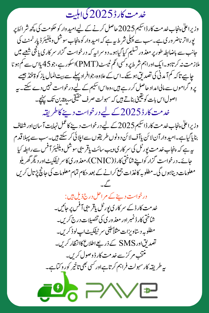 Quick Information About CM Punjab Khidmat Card Scheme 2025