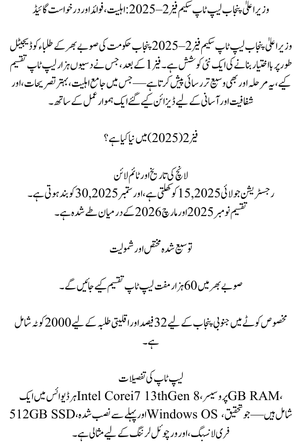 Program Name CM Punjab Laptop Scheme 2025 – Phase 2
