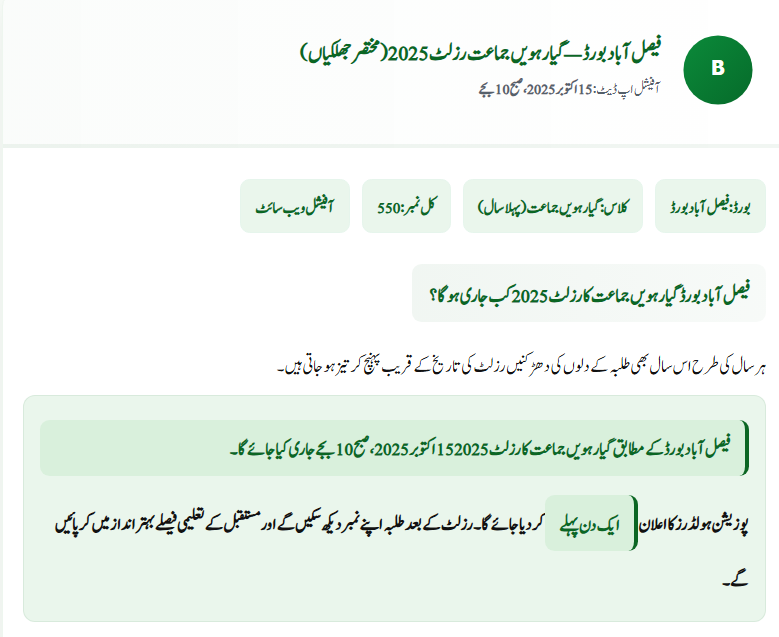 Q1: When will Faisalabad Board 11th Class Result 2025 be announced?