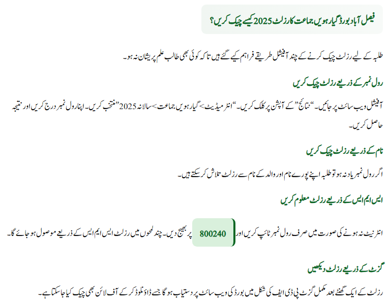 This result will help students decide which academic path to pursue next, whether it be science, commerce, or arts. The good news is that Faisalabad Board has provided multiple official methods to check the result so that every student can access it easily and without any trouble.