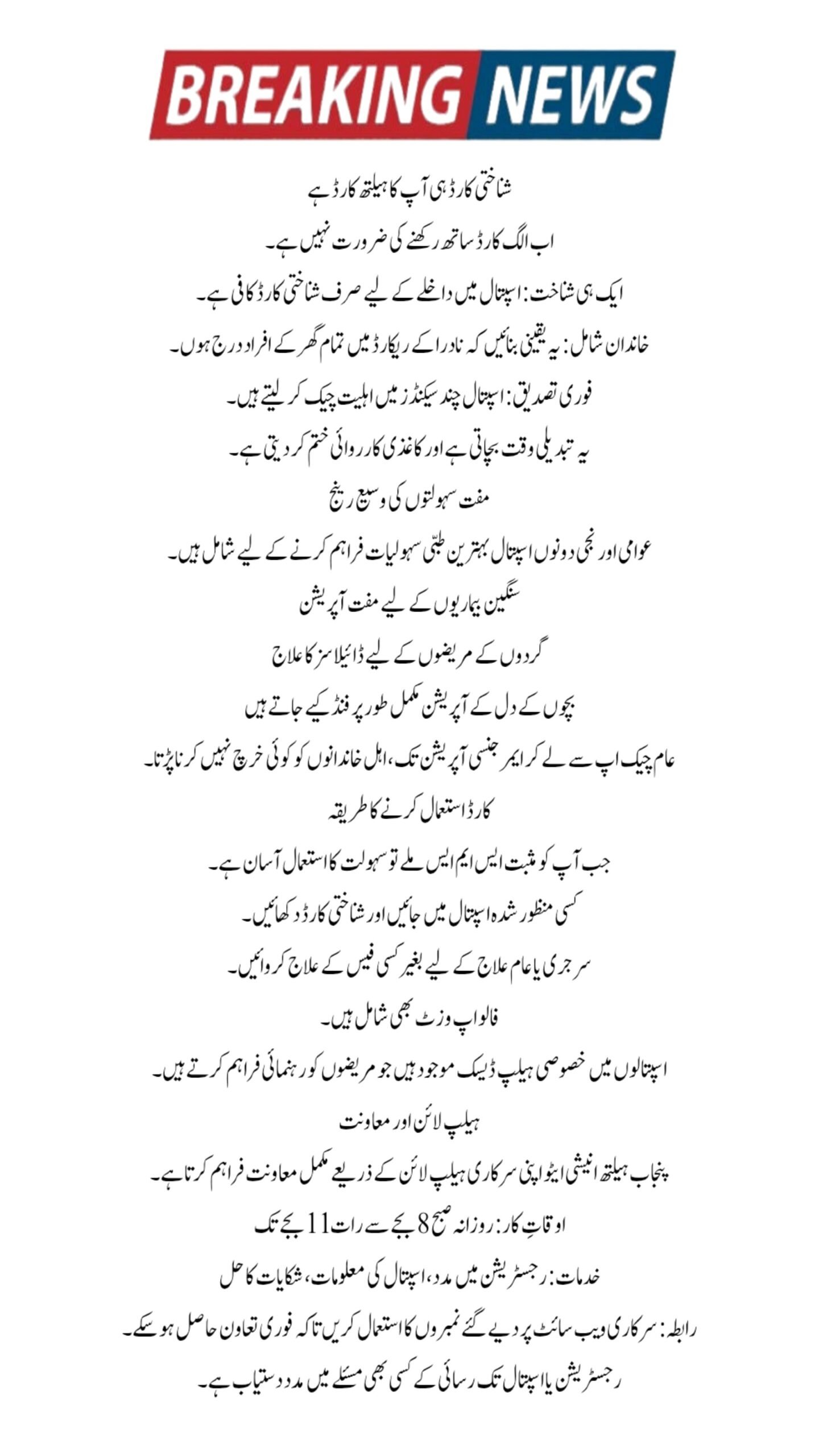 The Punjab Health Initiative offers full assistance through its official helpline.