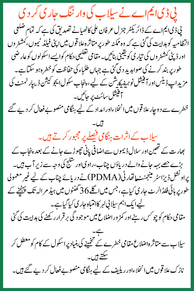 While revised school timings aim to ensure academic continuity post-summer break, the evolving flood situation in Punjab has placed additional pressure on schools, parents, and local authorities. The government’s priority remains the safety of students and staff. Stakeholders are advised to stay updated through official channels and remain prepared for sudden schedule changes depending on flood developments.